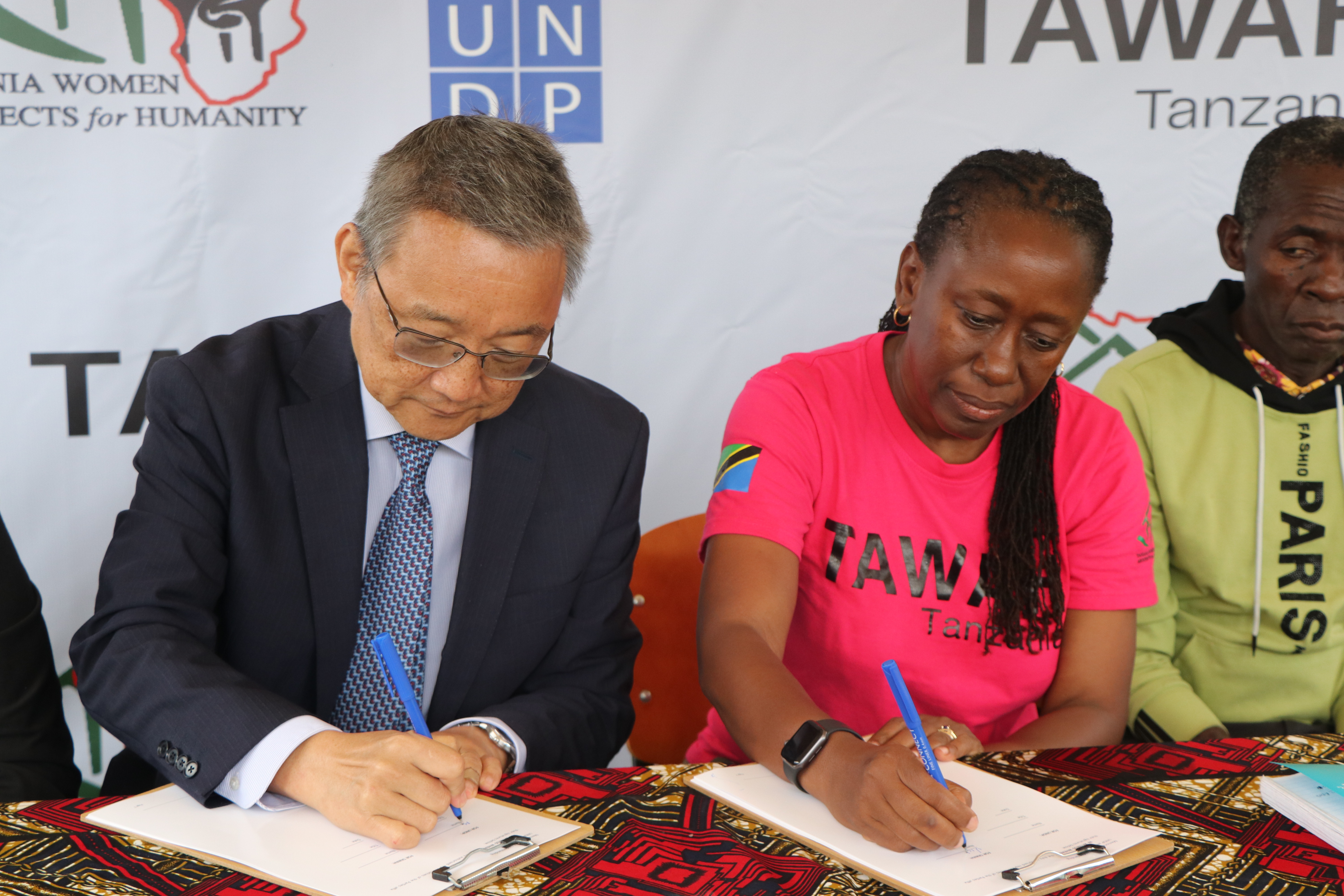 The signing ceremony took place at the TAWAH Vocational Training Centre in Mhaga village, attended by a distinguished delegation from UNDP Tanzania led by Resident Representative Shigeki Komatsubara, alongside Godfrey Nyamrunda. The TAWAH delegation was led by Board Member and CEO of DCB Commercial Bank, Sabasaba Kitewita Moshingi, together with Executive Director Victoria Marwa Heilman.TAWAH extends sincere appreciation to local government leaders, media representatives, and the Mhaga community for their presence and continued support during this important milestone.